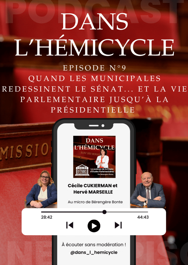« Dans l’Hémicycle », podcast bimensuel, est présenté et réalisé par Bérengère Bonte, journaliste politique, auteure et réalisatrice. Il ambitionne de questionner et vulgariser la vie parlementaire et le fonctionnement des institutions. Ses invités, des personnalités du monde politique, universitaire, administratif ou journalistique témoigneront également de leur pratique professionnelle.